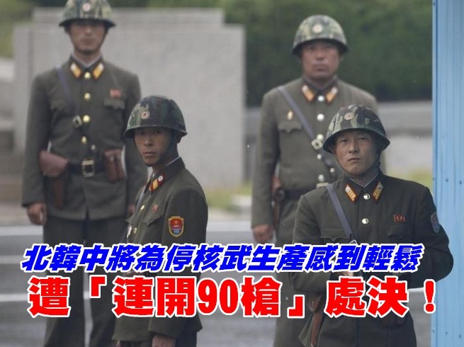 北韓近日傳出,為了對一名中將執行槍決,居然派出9位行刑官狂開高達90槍。消息人士指出,玄主成(音譯)中將之所以會被判刑,是因為他向射擊隊同僚及同僚家屬贈送物資,並曾表示對不用再製造火箭或核武器感到輕鬆,因此被平壤當局視為濫用權力並違背「樹立黨的唯一思想體系十大原則」。
