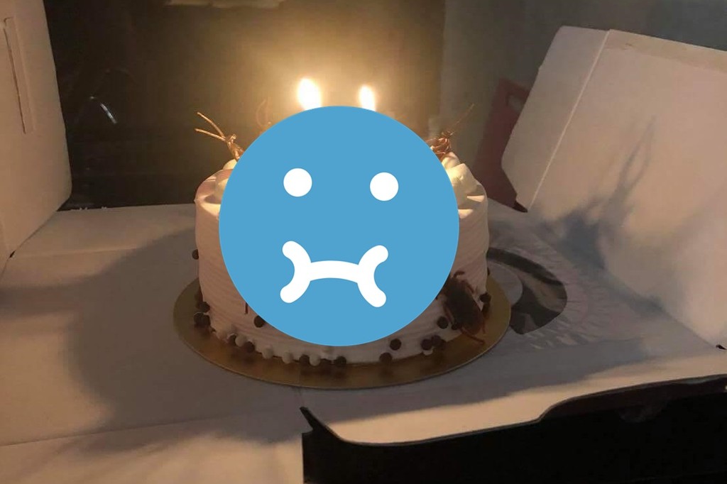 ▲蛋糕上滿是造型蟑螂,讓網友也喊想打人。(圖/翻攝自爆料公社官網)