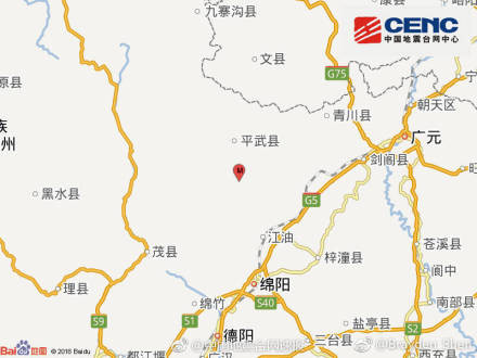 根據中國地震台網消息,四川綿陽平武縣(北緯32.17度,東經104.57度)29日8時42分發生規模4.0地震,震源深度18公里。