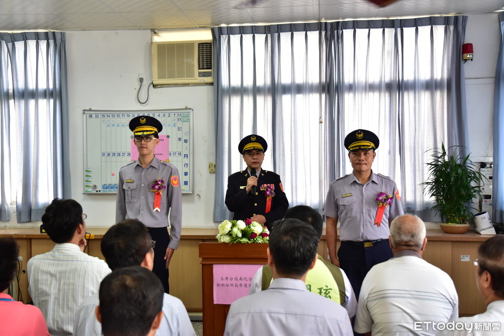 台南市警玉井分局長陳保安,29日親自主持南化分駐所卸、新任所長布達典禮,新任所長巡官陳家維,從卸任所長黃三豪手中接下重任,將全力維護南化地區地方治安。