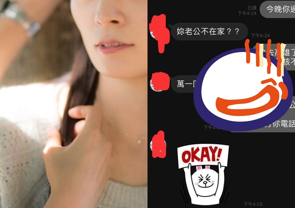照片中的對話內容可以看見,老婆問小王說:「今晚你要過來嗎?」小王則問說:「妳老公不在家?」老婆就說:「老公去高雄出差了,今晚應該不會回來。」但小王還是很擔心,又問說:「萬一回來怎麼辦?」