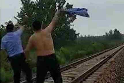 ▲警員揮舞衣服警告火車。(圖/翻攝微博,下同。)