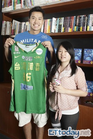 瑜貞還在讀大三,就讀銀行與金融系、課業繁重的她,特地請了九天長假,飛來台灣和何守正見面。她說自己從小就愛打籃球,更愛看籃球,因此高二看到何守正後,便崇拜起他,「因為他不僅堅持夢想,也很努力、孝順,我覺得好感動。」只是在馬來西亞比較流行看NBA,所以她很少跟同好交流,只有在Facebook上才能和台灣球迷聊天,也沒辦法拿到任何周邊商品,不過這次竟能親眼見到何守正,她驚呼「太不可思議了!」(收到何守正親贈的絕版球衣,瑜貞喜孜孜地穿上拍照。圖/記者朱璟柔攝)