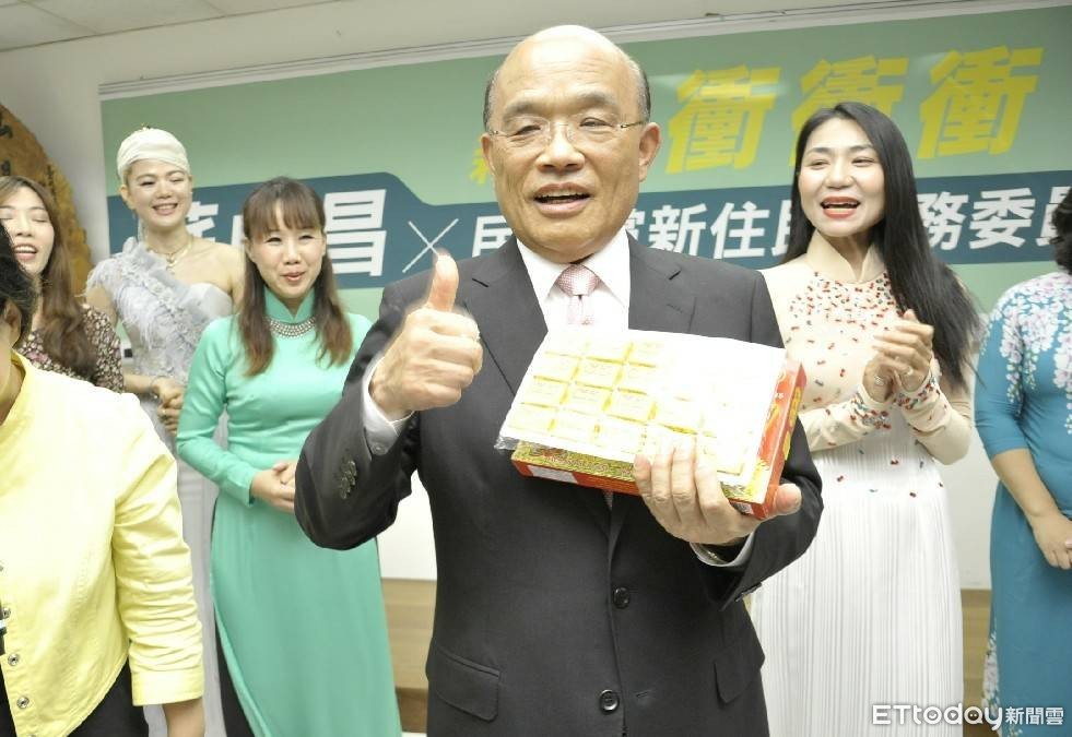 新住民政策在台灣一直都被受關注議題,藉此,蘇貞昌在會議當中提出四大方向「成立人才庫」、「就業的提升」、「單一窗口的服務」及「網路資訊的提供」。結尾的時候新住民姊妹,貼心送上越南傳統點心綠豆糕,越南姊妹陳玉冰說,在越南稱「Đậu」有豆類及當選的兩種意思,將綠豆糕送給蘇貞昌,希望蘇貞昌能選舉順利。