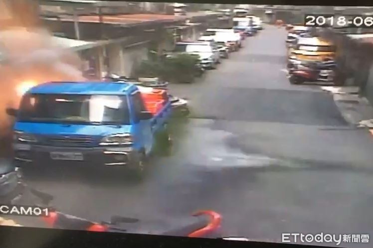 ▲氧氣鋼瓶瞬間爆炸造成男子遭灼傷。(圖/記者陳豐德翻攝)