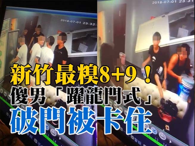 ▲8+9破門糗被卡在門上。(圖/翻攝新竹爆料公社,下同)