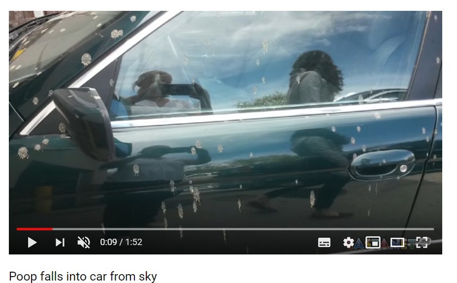 居住在不列顛哥倫比亞省(British Columbia) 基隆拿市(Kelowna)的蘇珊(Susan Allan)表示,當時她和兒子崔維斯(Travis)在車內等待紅燈,由於車棚是打開的狀態,突然感覺一堆糞便從天而降,「當這些東西打到我的車子時,看起來就像是從天降下了一大坨泥漿,後來還打到了我們的臉,感覺起來十分冰涼,聞起來就是大便的味道」。