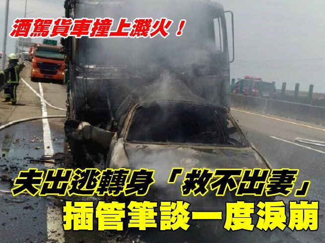 嘉義縣東石鄉台61線西濱快速道路北上段3日發生一起死亡車禍,吳姓男子(28歲)酒後開著滿載蚵仔的貨車猛力追撞前方轎車,導致小客車當場起火燃燒,車內一家3口僅逃出2人;傷者劉男(55歲)含淚以紙、筆向警方表示,當時自己僅拉出坐在副駕的女兒,但卻來不及救後座的妻子(52歲),過程中一度痛哭流淚,令現場警方看了也相當心酸。