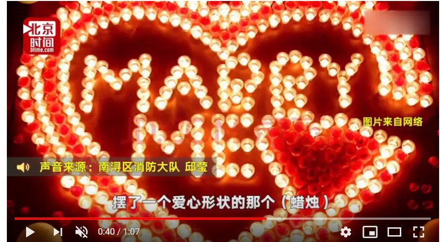 中國大陸浙江湖州市一名男子為了想給女友驚喜,在飯店裡點燃了8根被排成心形的蠟燭,沒想到蠟燭燒到地毯引起火災,不但房間被燒到幾乎全毀,另外的8間房也慘遭波及,飯店最後向他求償25萬人民幣(約台幣115萬元)的損失。