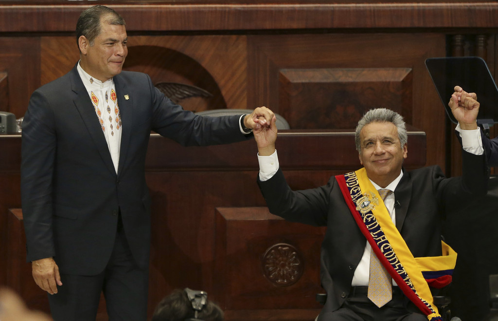 ▲厄瓜多現任總統莫雷諾(Lenin Moreno)(右)與前任總統柯利亞(Rafael Correa)。(圖/達志影像/美聯社)
