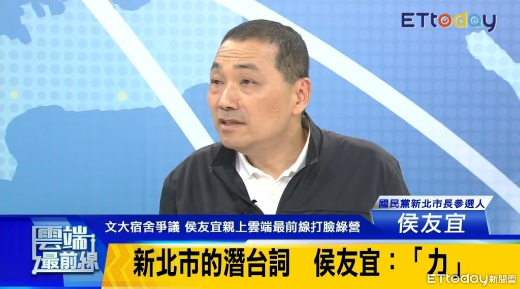 《雲端最前線》4日以「文大宿舍爭議 侯友宜親上雲端最前線打臉綠營民調越打越高 侯友宜:我不會被打倒」為題邀請侯友宜專訪,這也是侯友宜首次登上網路直播節目。