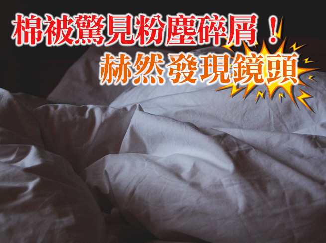 OL今年3月深夜回租屋處後,準備洗澡睡覺,睡前卻發現床上棉被與枕頭上有不明粉塵及碎屑,越想越不對勁,抬頭看天花板竟發現有一條電線,綁著一個類似鏡頭的物品,直覺告訴她,自己正被人偷拍,於是打電話給男友求救,報警處理。