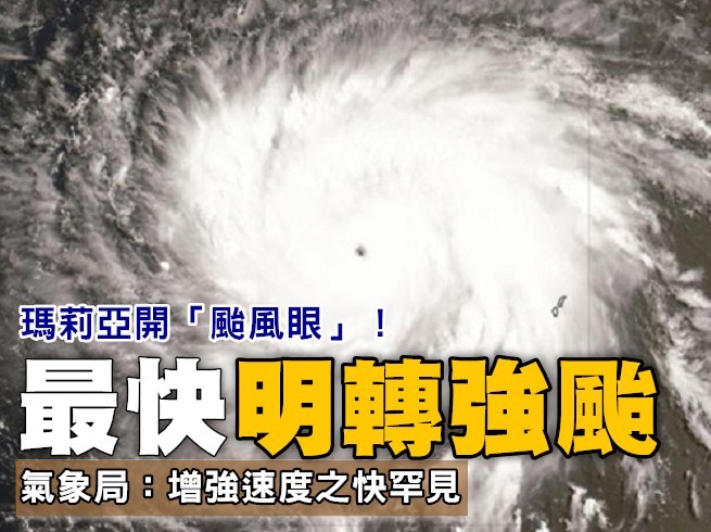 氣象預報員陳伊秀表示,瑪莉亞目前持續增強中,今凌晨2時已增強為中度颱風,颱風眼已經出現,代表颱風很強,預計最快今天深夜至明天凌晨這段時間,就有機會再轉強颱,增強速度之快。