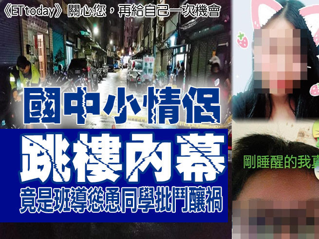 家住板橋,年僅13歲的一對國中男女日前相擁跳樓身亡,外界猜測2人輕生的原因,可能是早戀不堪外界壓力所致,沒想到逼他們走上絕路的竟是學校班導師。