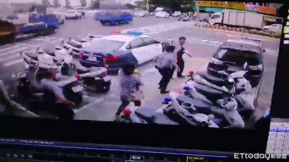 ▲郭姓女子抱著男童急衝派出所向警方求救。(圖/記者林悅翻攝,同下)