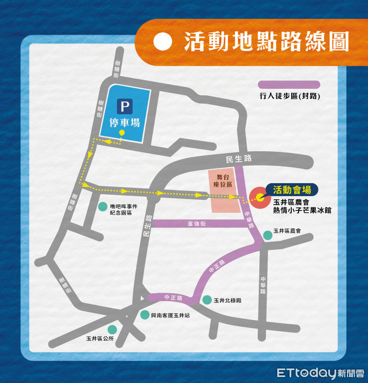 ▲台南玉井老街上,7月8日將舉辦盛大的「涼辰吉時-玉井芒果挑戰金氏世界紀錄最大(1500公斤)刨冰」的千人活動,歡迎到場參與盛舉。(圖/西拉雅風管局提供)