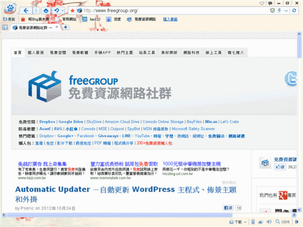 百度瀏覽器的主畫面和 Google Chrome、Firefox 類似,不會太難上手,首頁預設是幾個台灣網友常用的網站,包括 Yahoo!、Facebook、Google、YouTube 等等,開啟新分頁時可以快速進入你想去的網站。