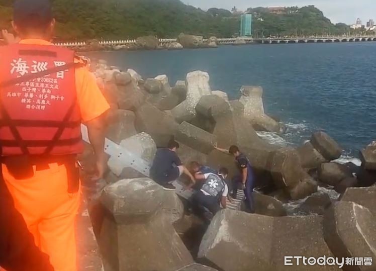 救難人員到場後,立刻下至海堤消坡塊上展開救援,迅速將婦人順利救起,發現她手腳有多處撕裂傷,經由救護人員先進行簡易包紮後,隨即將她送往醫院救治。