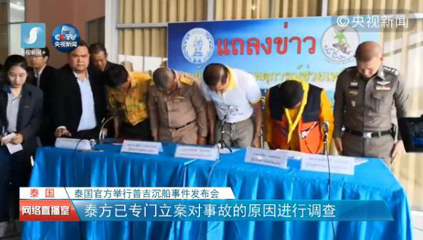 ▲泰旅遊部長鞠躬道歉並表示,已打撈上岸的41名遇難者有13名兒童。(圖/翻攝自央視新聞)
