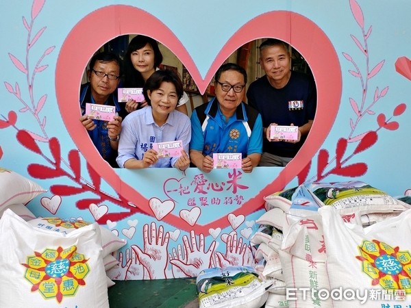 由楊麗環擔任團長的桃園市藍天志工團,積極展開「一把愛心米匯聚助弱勢」活動,8日抵平鎮區鎮安宮,鎮安宮主委王年發、平鎮市議員參選人陳萬得也到場支持藍天的捐米活動。楊麗環說,藍天就是要打造一個公益平台,將全台多餘的物資透過藍天的轉介,送給急需的個人或團體。