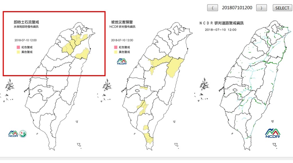 ▲農委會土石流警戒區域,8縣市17鄉鎮已發布黃色警戒。(圖/翻攝農委會水土保持局網頁)