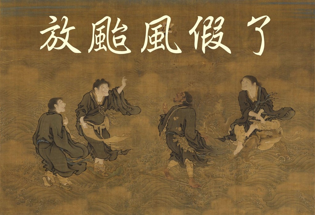 故宮小編在粉絲專頁寫下:「西北颱 ,飄向北方,故宮北部院區,四點後閉館,颱風天,在家看國寶,最安全~」並附上數張古畫,搭上搞笑的旁白OS,像是明代商喜的《四仙拱壽圖》被配上「放颱風假了」,讓四仙看起來超歡樂。