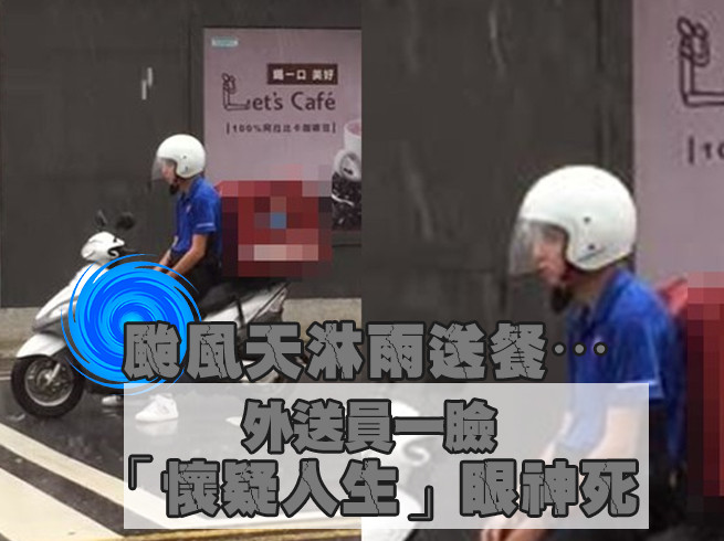 ▲颱風淋雨送餐…外送員一臉厭世,網友拍拍:「幹在心裡口難開,真的辛苦了!」(圖/翻攝自爆料公社)