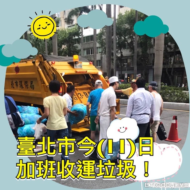 ▲台北市清潔隊今(11日)加班收運垃圾。(圖/翻攝台北市環保局臉書粉絲團)