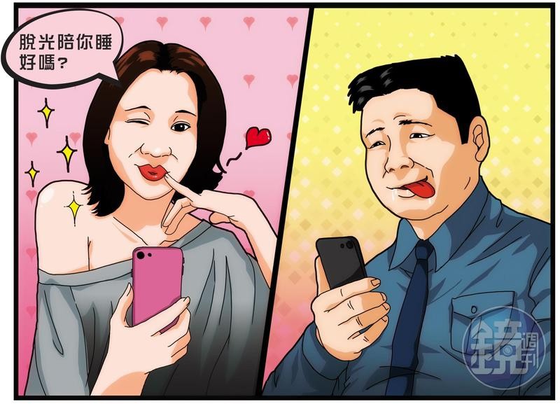 當事人之一的「飛哥」說,最早是H女先加他臉書,兩人並在臉書上頻頻互動,雙方因此再互加LINE。飛哥說,她聊天真的很會逗男人開心,有一次我在LINE跟她說「冬天一個人睡覺很冷。」結果她就回我「我脫光光衣服陪你睡好嗎?」飛哥就此落入H女設好的圈套。飛哥後來遭到單位處分,衡量打官司又要花一筆錢,反正借出的金額才6萬多元,就自認倒楣算了。