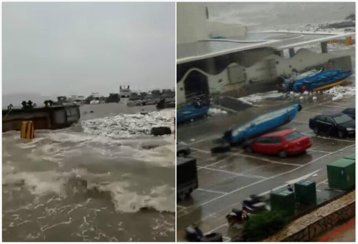 不過3小時前,當地一名網友就po出影片、照片,表示「因靠海邊,瑪麗亞小姐直撲,馬祖地區風雨交加。」所攝畫面位於祖南竿的福澳港,只見海水打上超過一層樓高,整片天也是霧濛濛一片,光看就能感受到風的強勁。