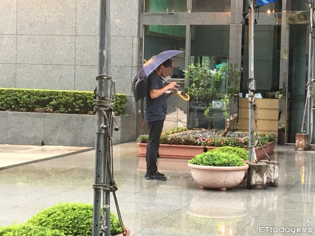 ▲洋男在電視台樓下守候遭警方制止。(圖/記者邱中岳翻攝)