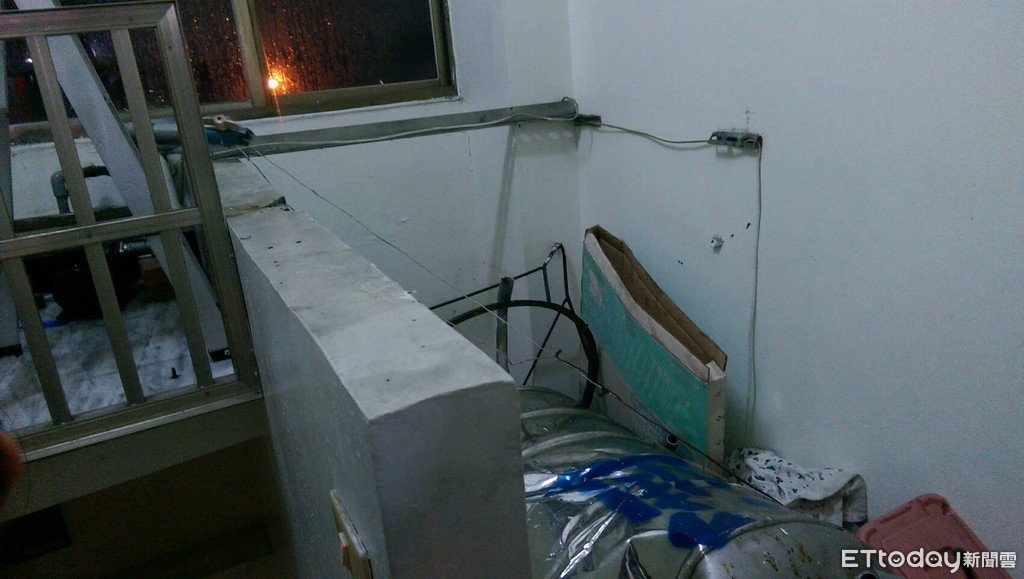 ▼永康區中山南路471巷民宅發生水塔掉落,民眾擔心漏電報警。(圖/記者林悅翻攝,下同)