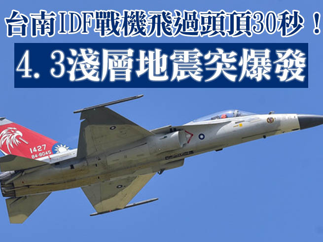 台南市安南區11日晚間8點41分發生規模4.3極淺層地震,最大震度5級在永康。多名網友指出,當下有多台IDF戰機飛過天空,30秒後就地震直接爆發,還發出巨大的聲響。對此,氣象局也做出回應。