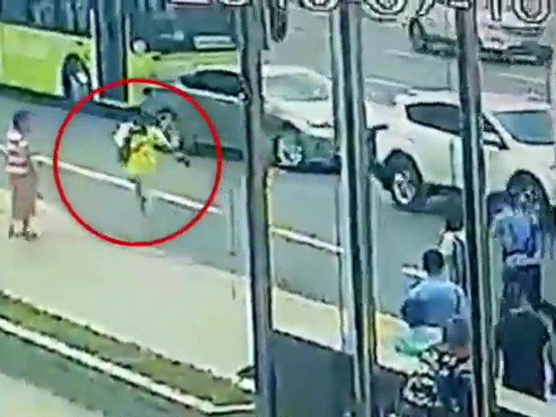 ▲用包包打昏司機的黃衣女子見情況不對,從巴士的後車門跳下,沿路逃跑。(圖/翻攝自大陸網站)
