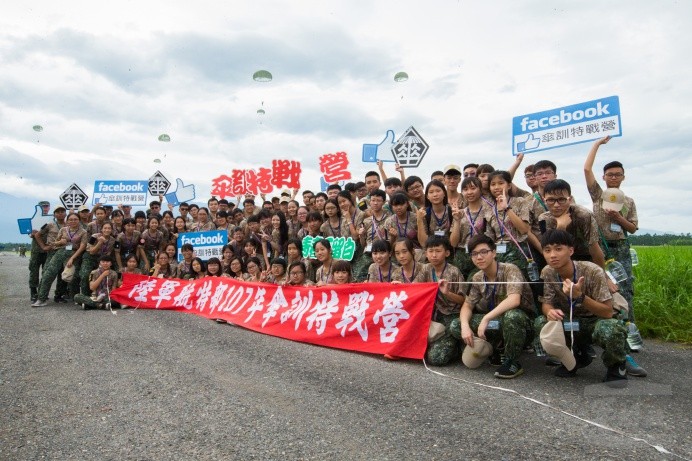 「傘訓戰鬥營」第2梯次學員12日前往屏東潮州空降場,觀看跳傘訓練以及「神龍小組」操演高空跳傘,對陸軍航特部傘兵能自空中精準著陸的精實戰力,留下深刻印象。