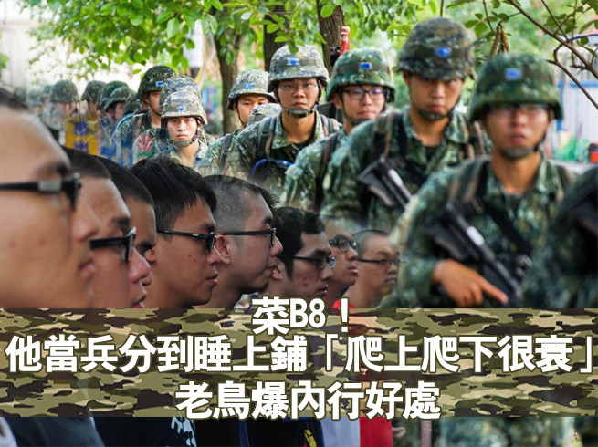 對多數台灣男人來說,當兵是無法逃避的義務,軍旅生活中充滿酸甜苦辣,汗水交織著淚水,在「陰間」過得是好是壞往往全憑運氣。就有菜兵對大通鋪住宿模式相當好奇,認為分到睡上鋪最是麻煩,上、下床還得要先爬梯,不過這言論一出,馬上被資深老鳥反駁!