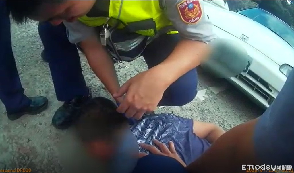 ▲慣竊被槍聲嚇壞,乖乖爬下車就逮。(圖/記者陳雕文翻攝)