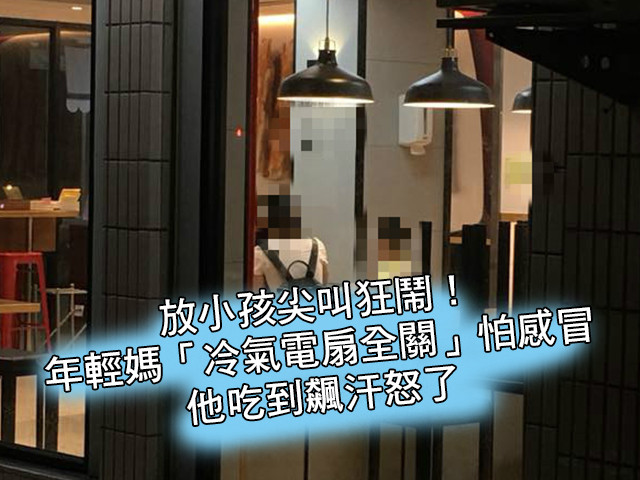 一名男網友昨晚和老婆在外用餐,等餐的過程中,突然來了一位母親帶著3個孩子,小朋友入座後便尖叫大鬧、亂摔玩具,種種行徑已經讓他很頭疼了,沒想到吃到一半,他開始狂飆汗,經詢問才知,是母親怕小孩冷到,所以要求將冷氣、電風扇全關,滿腹怒火的他不禁直呼,「X會不會太扯啊!」