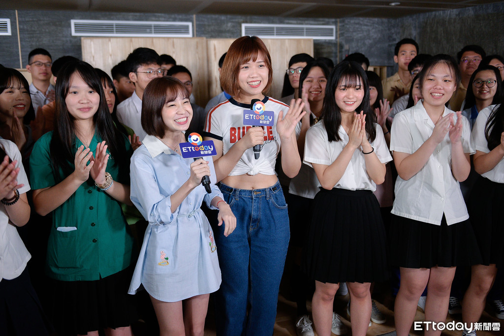 ▲畢業歌女神許維芳(中)也到現場替學弟妹們加油打氣。(圖/記者張一中攝)