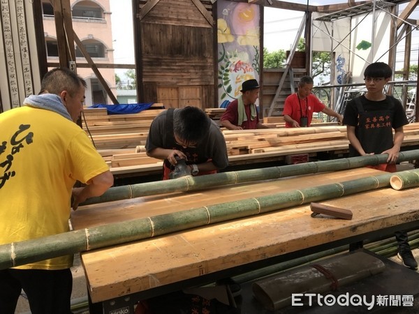 專程來台參加「大溪普濟堂關聖帝君聖誕慶典暨遶境儀式」的日本香川縣高松市香川町祭典保存會人員,不僅要將香川町的hyoge祭典在桃園完整精彩演出,近日來祭典保存會會長植松一夫等人,並至大溪區至善高中與家具木工科師生共同合作,以大溪在地孟宗竹與南方松為材料,手工打造高約1.5公尺、長寬約3公尺的正宗日式神轎。