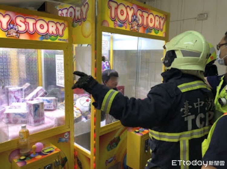 夾娃娃機也可夾真娃娃?台中市西屯區一名婦人帶3歲男童到夾娃娃機店玩耍,沒想到男童竟然透過取物口爬進夾娃娃機內,婦人當時顧著講電話,一回頭發現男童滿頭大汗,慌張地大聲叫媽媽,母親打不開,趕緊打電話向119求救,找鎖匠也打不開,消防隊為男童生命安全,先行將玻璃打破救出男孩,男童母親頻向消防隊表達感謝。