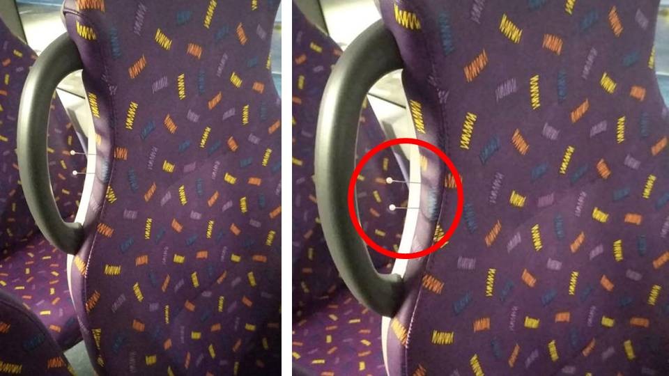 ▲曾在6月中旬有民眾就發現,座椅被插了1支縫紉針。(圖/翻攝自D18-東區友臉書)