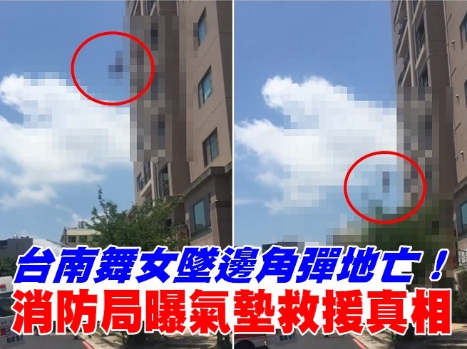 台南市一名在舞廳工作的黃姓女子疑似感情糾紛而有情緒問題,14日早上先在北區開車撞賓士車,接著回家坐上了12樓高的陽台準備墜樓。警消在1樓裝置氣墊,黃女從12樓跳下墜落在消防氣墊邊角後彈落至地面,仍傷重不治身亡。民眾疑惑「氣墊有用嗎?」台南市消防局表示,標準氣墊的承受力一般5樓以下墜落,6樓已達安全極限。