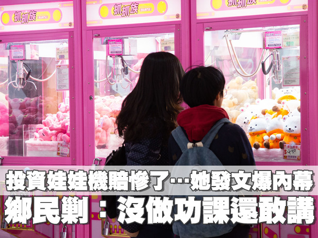 女網友在批踢踢貼文「有女孩經營娃娃機台嗎?勸妳趕快退場」,說自己前陣子加入了夾娃娃機產業,預付半年租金,租了機台準備自己布置當台主。她本來抱持著美好的幻想,要迎接自己的事業,「結果這3個月來每個月都是賠錢,甚至連租機台的錢都賺不回來」,場主知道後也只是說風涼話,認為她不懂得經營、很白癡。