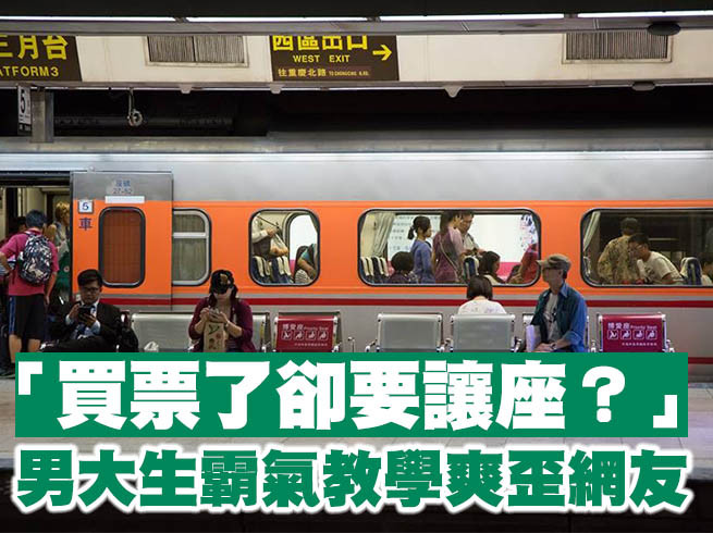 一名女大生日前在《Dcard》發文,說自己從台南要北上,事先買了自強號車票,卻被一位阿嬤要求讓座,她回應身體不適竟遭旁人側目,讓她很委屈。另一名男大生看到後,忍不住回文「搞錯重點了吧」,用合法程序購票,就擁有座位的「絕對使用權」,根本「不必」讓座。一番言論引發網友紛紛喊讚「說得好」。
