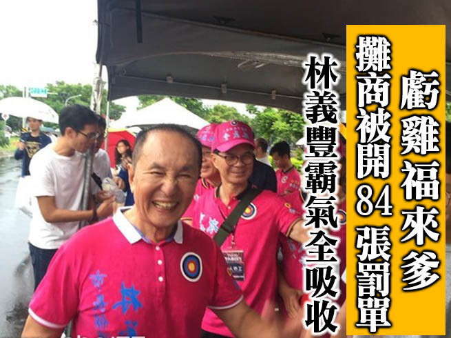 無黨籍台南市長參選人林義豐團隊,7月14日晚上在東區平實公園舉行首場Crazy Friday國際音樂節活動,現場吸引了許多民眾前來參與狂歡,因此許多攤商看準人潮帶來錢潮,紛紛依規定繳費前來賣東西賺錢,但卻有84家攤商被警方開單罰錢,對此,林義豐表示,會把開罰的金額全部吸收。