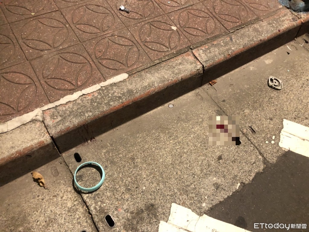▲地上留下血跡、手錶及機車零件。(圖/記者趙永博攝)
