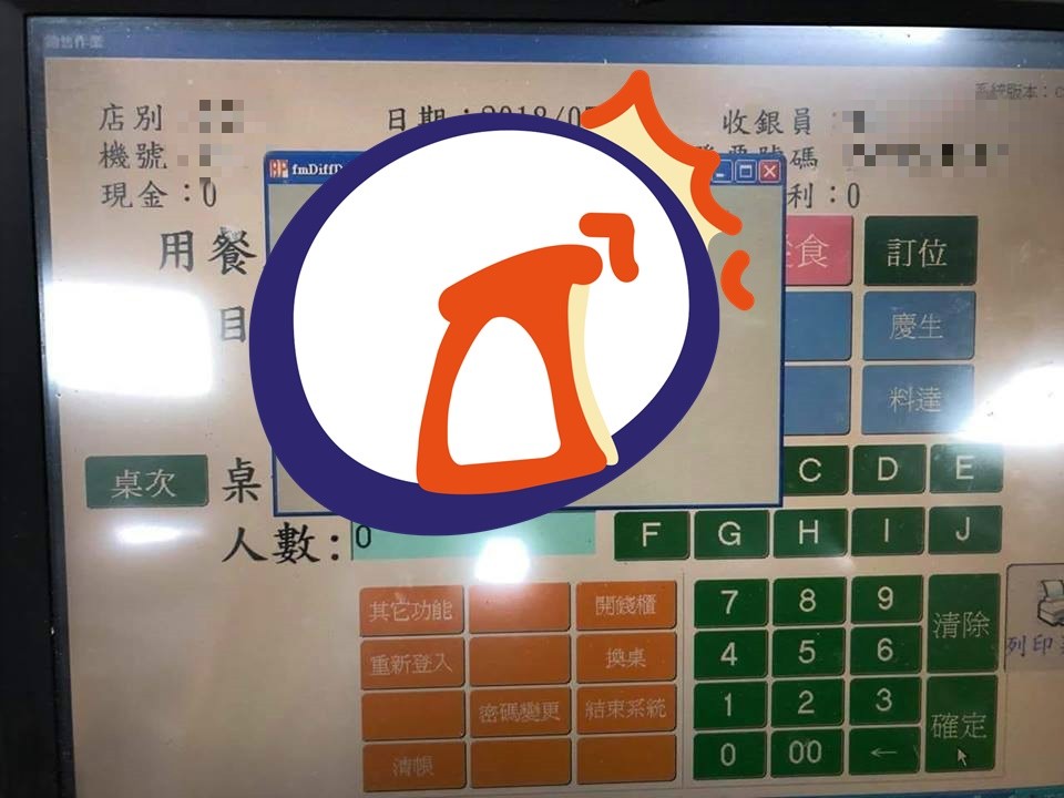 由於他一個手滑,在用餐人數的欄位中打成「0」,POS機竟出現小視窗嗆,「最好是0人用餐!難不成是鬼!?」對此,網友們紛紛表示,「好懷念,以前在三X巧福也是用這種POS機」、「這個嗆的有道理」、「按確定就是鬼了」、「我上次誤觸按鍵,被我們診所掛號系統嗆:別亂按!候診處沒人」、「好嗆…對不起我嘴角失守」。