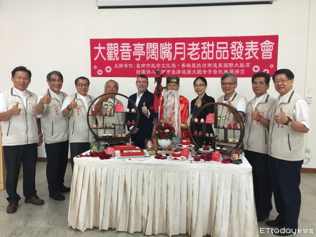 ▲台疆祖廟大觀音亭暨祀典興濟宮,與香格里拉台南遠東國際大飯店,設計出「闊嘴月老限定甜點及下午茶」,共同行銷台南獨有的月老文化。(圖/記者林悅攝)