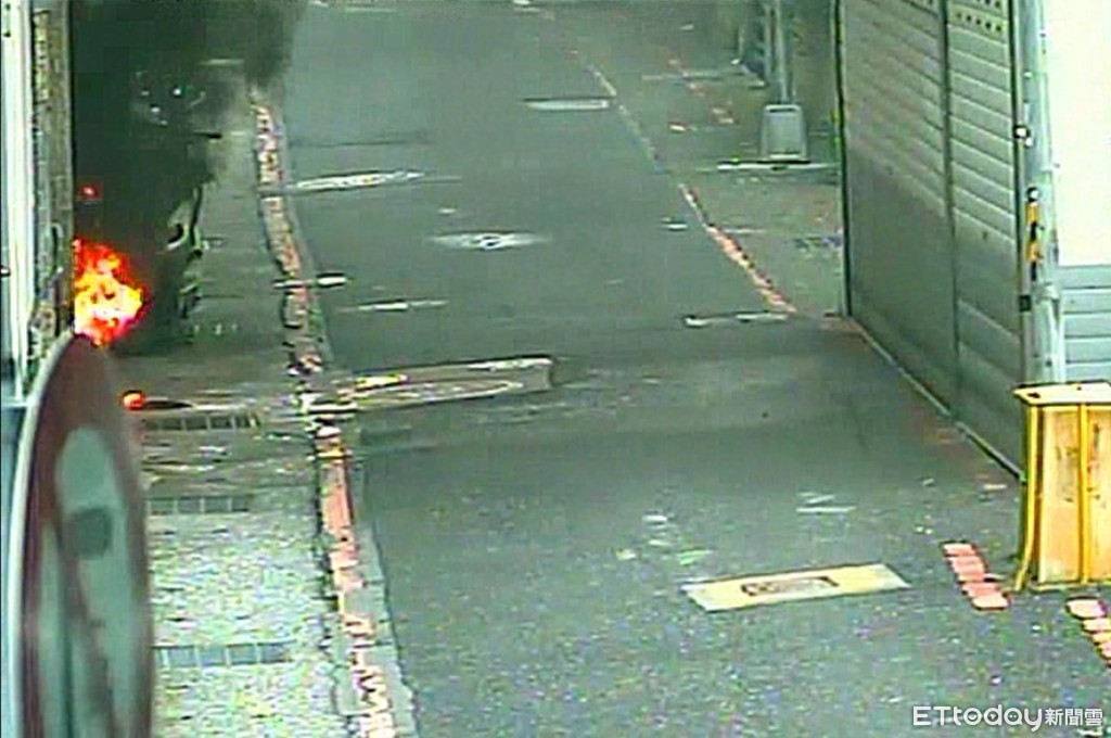 ▲男子縱火後還回頭確認火勢已經燒起來。(圖/記者邱中岳翻攝)
